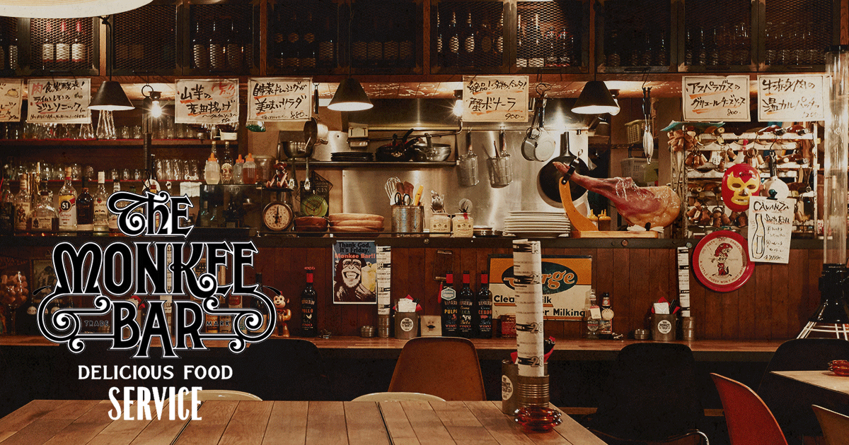 流山の居酒屋・肉バル「Monkee Bar(モンキーバー)」。美味しい肉料理とワインが人気のお店です。一人飲み、デートの...
