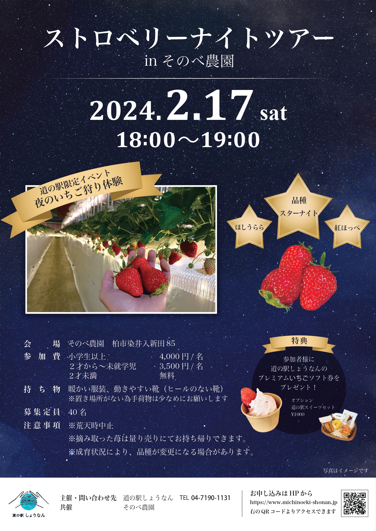 そんな「そのべいちご園」が、夜にいちご狩りをする「ストロベリーナイトツアー」が開催されます。前回も大好評だったようですので気になる方はチェックしてみてください!