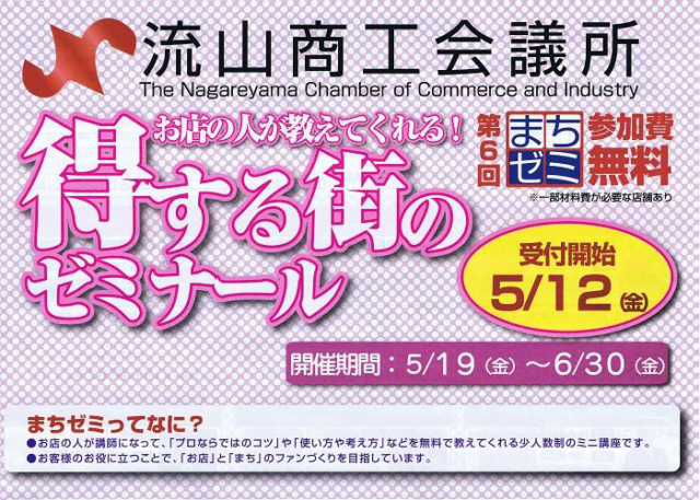 そんな、きっかけづくりの後押しになるようなイベントが開催されます。「得する街のゼミナール」です。街のお店の人が講師となるミニ講座が開かれます。これを機にプロの技術や情報を盗んでしまえ!いえいえ、プロが教えてくれるんです。しかも無料で。