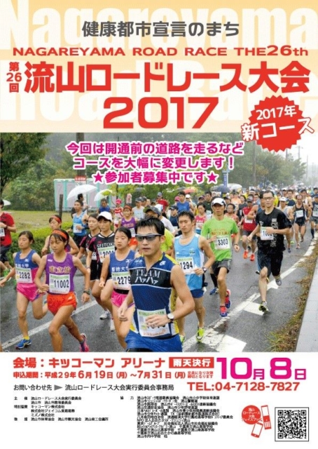 毎年10月に開催される「流山ロードレース大会」の申し込みが始まります。募集期間は6月19日から7月31日まで。毎年人気の大会なので早めの申し込みが宜しいかもしれません。