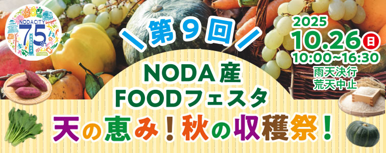 2025年10月26日イオンノア店駐車場にて開催です。天の恵み!秋の収穫祭!美味しい野田が勢ぞろい!