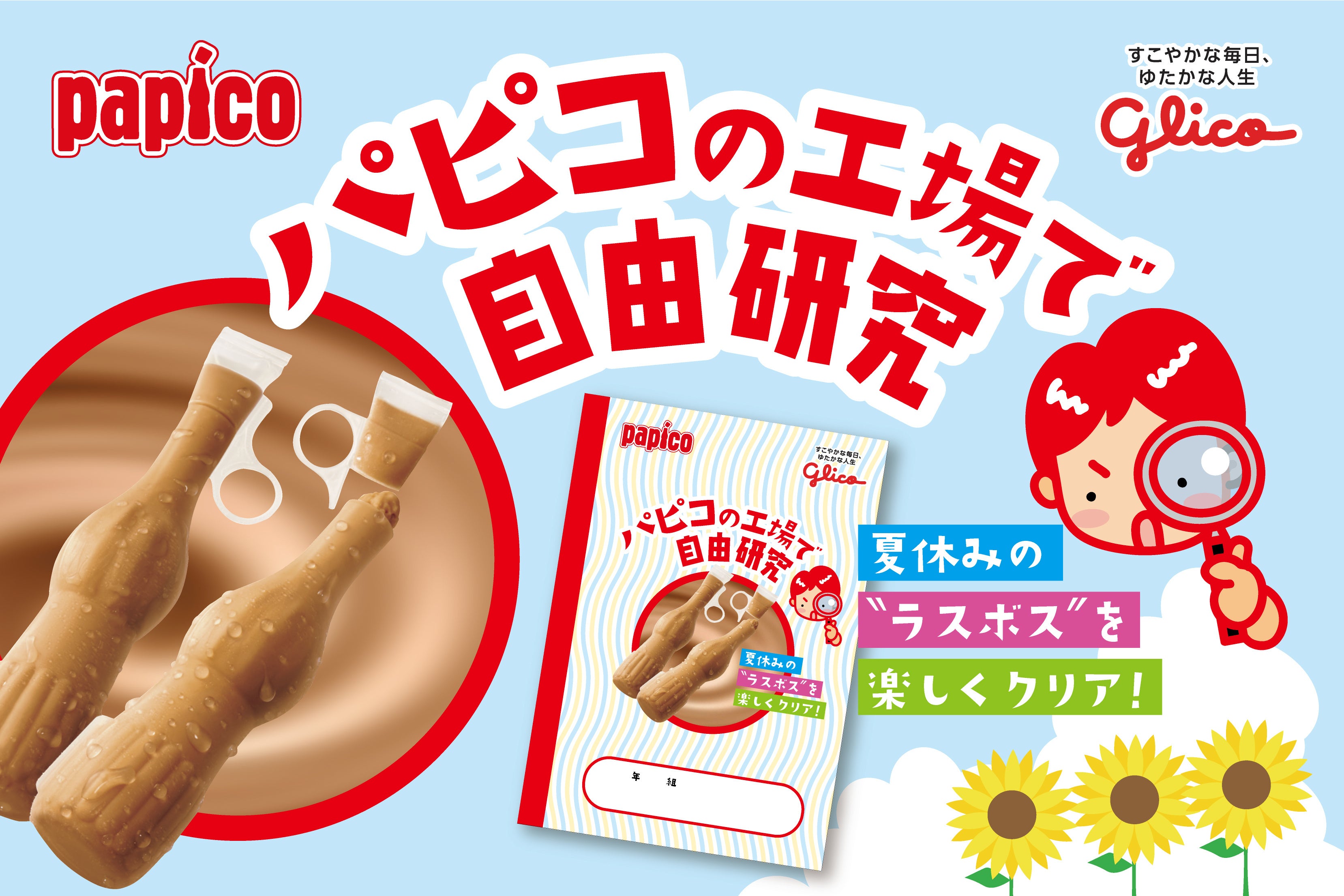 江崎グリコ株式会社が運営する工場見学施設「グリコピア CHIBA」にて、8月21日(月)から23日(水)の3日間限定で、夏休みの自由研究のための特別ツアー「アイスを科学するツアー~不思議な氷のヒミツ~」を開催します。アイスの製造工程を学んだあと、アイスづくりの不思議や「パピコ」を通じておいしさのヒミツを学ぶワークショップを行います。夏休みシーズンは即満員となるグリコピアで、今回初の試みとなる「夏休みの自由研究専用の特別ツアー」です。